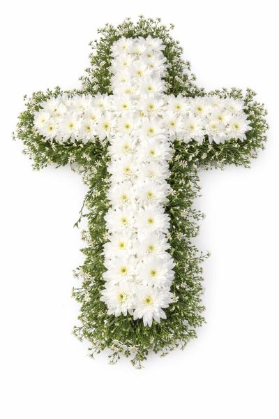 This Cross to keep inside the coffin includes 30 white chrysanthemum flowers.