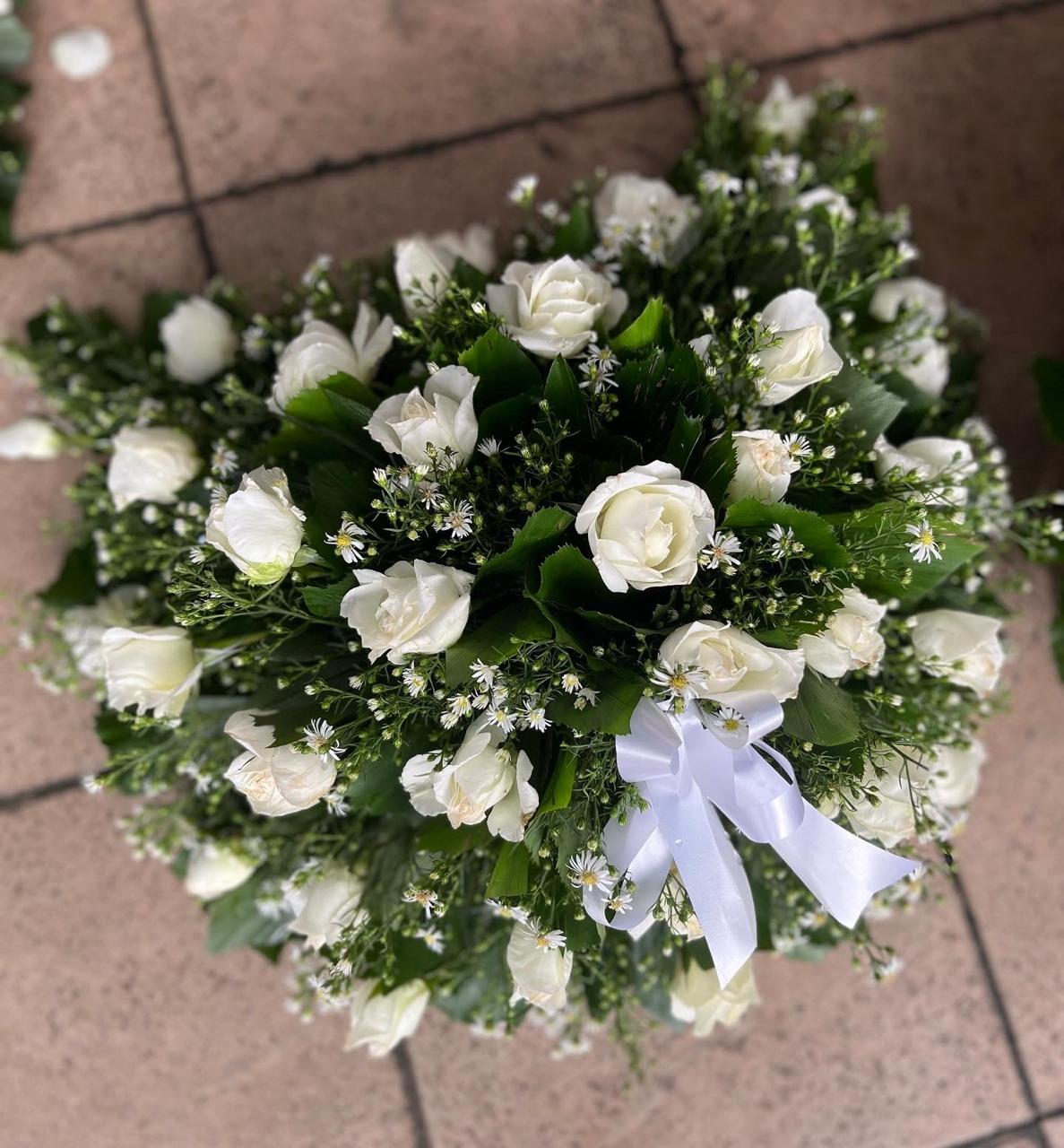 Funeral white roses crescent