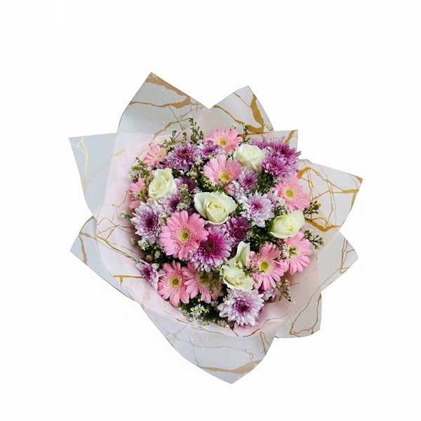 This bouquet comes with 10 to 12 chrysanthemum Flowers, 5 white